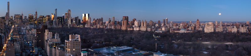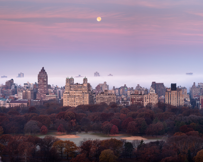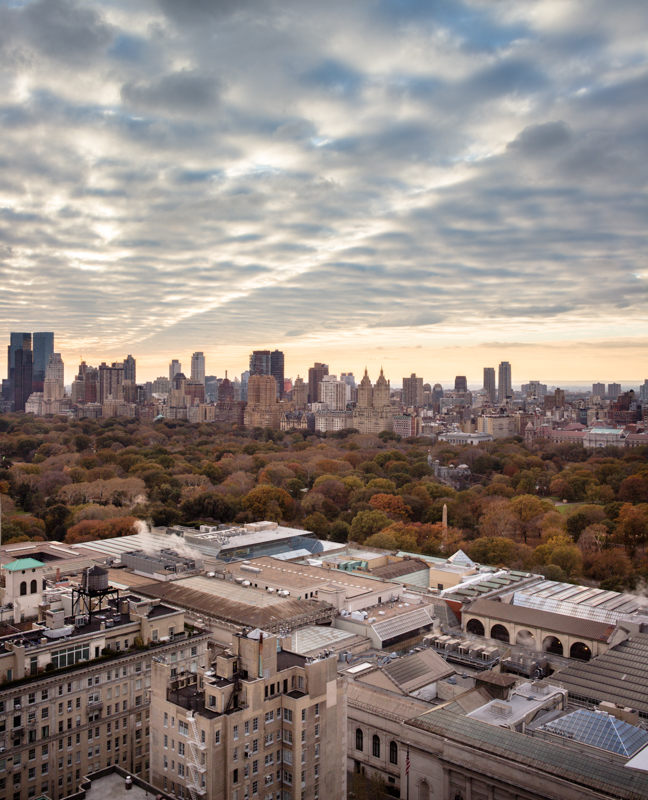 During 2017 and 2018, I had the opportunity to photograph Central Park and the buildings around it from an apartment on the 30th Floor of 30 East 85th Street. My client knew that she and her family would be living in the apartment only temporarily and she asked me to make a record of what they would see during their time there. Some mornings I entered the apartment, took two hours of photographs, and left before any of the family had woken up. Other times I went about my business on the balconies while different members of the family went about theirs inside–working, studying, relaxing, entertaining. Photography is an inconvenient vocation, and the best conditions inevitably come at just the moments when most people would much rather be doing something else.